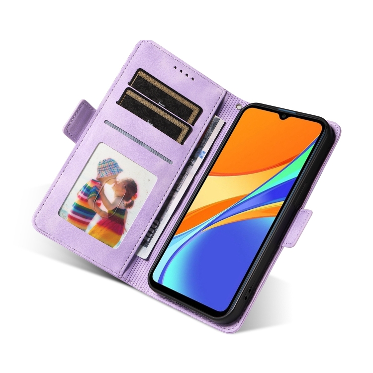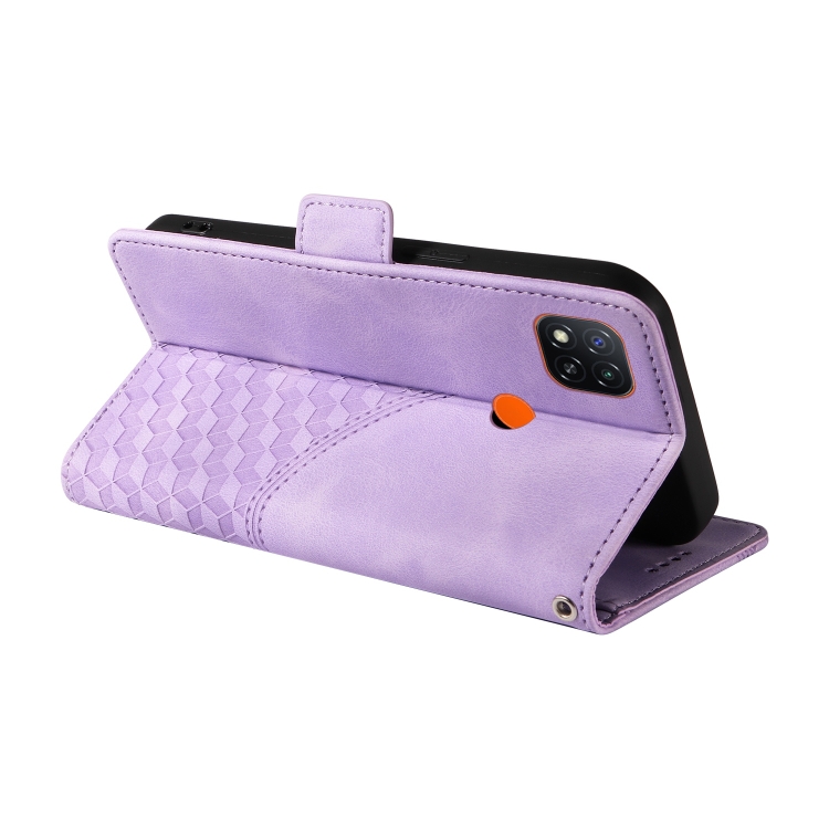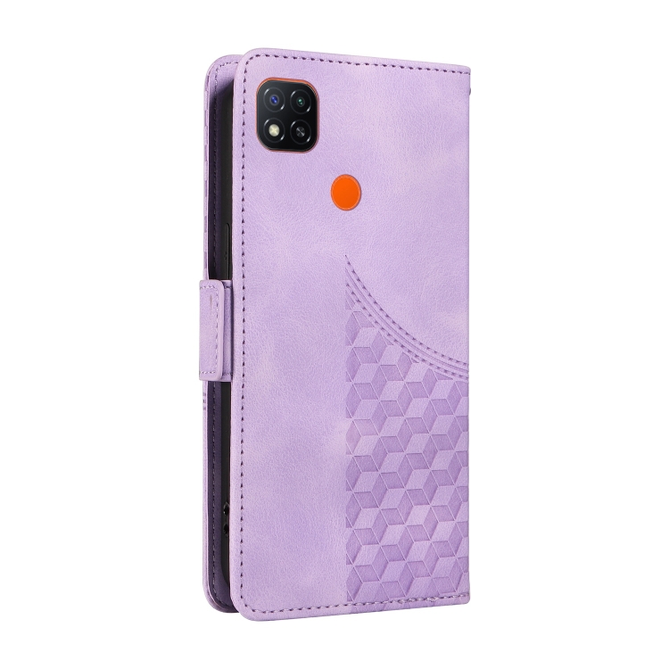 Para Redmi 9C / 9 India Funda para Teléfono de Cuero Estrellado con Rombos En Relieve (Púrpura)