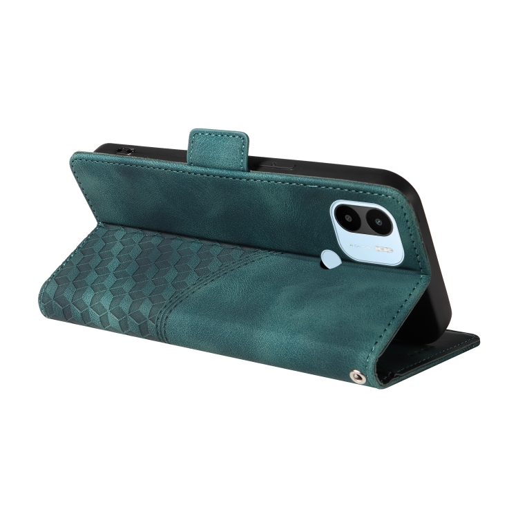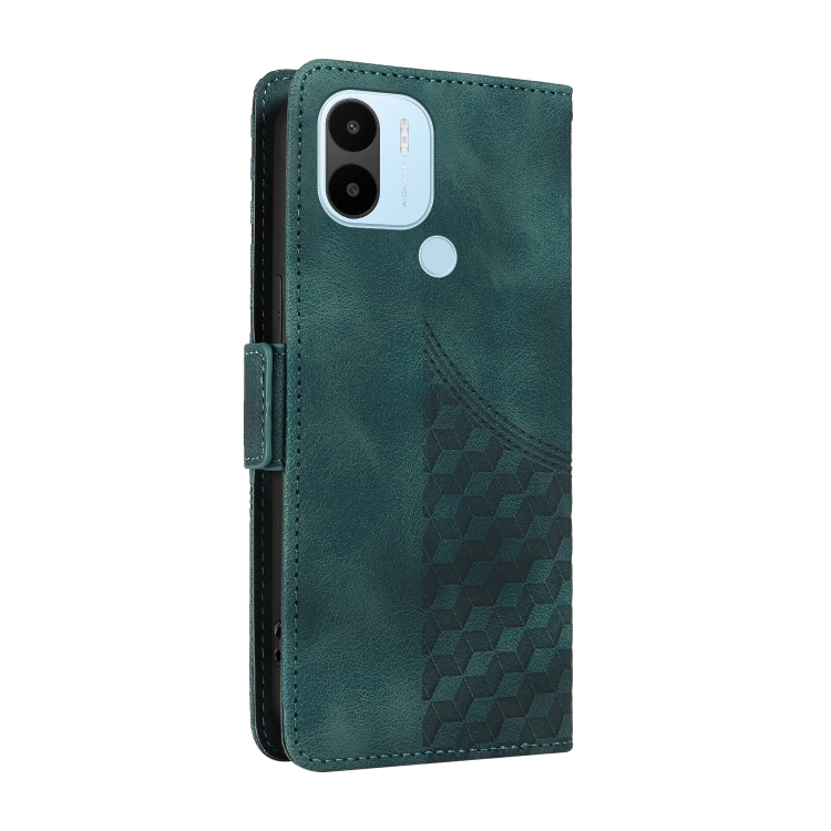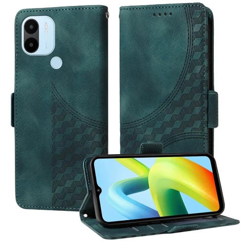 Para Redmi A1+ / A2+ Funda para Teléfono de Cuero Estrellado con Rombos En Relieve (Verde)