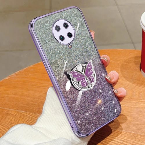 Para Redmi K30 Pro Funda para Teléfono de TPU con Soporte de Mariposa con Brillo Degradado Plateado (Púrpura)