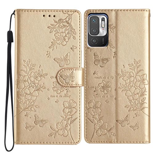 Para Redmi Note 10 5G Funda de Cuero para Teléfono con Mariposas y Flores (Dorado)