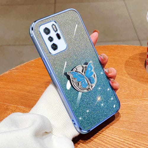 Para Redmi Note 10 Pro 5G Funda para Teléfono de TPU con Soporte de Mariposa con Brillo Degradado Plateado (Azul Sierra)