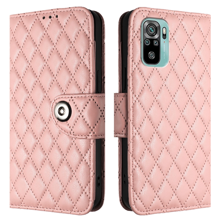 Para Redmi Note 11 Se India Funda para Teléfono con Tapa de Cuero con Textura Rómbica y Cordón (Rosa Coral)