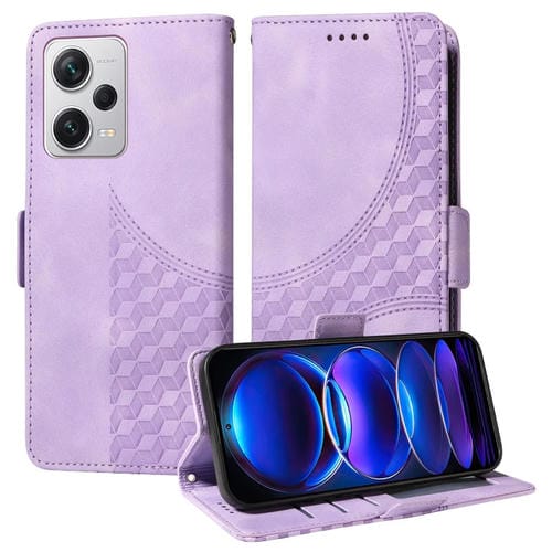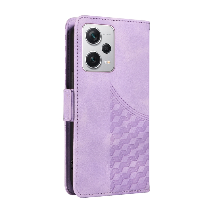 Para Redmi Note 12 Pro Funda de Teléfono de Cuero Estrellado con Rombo En Relieve Global (Púrpura)