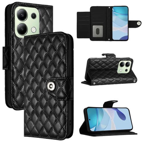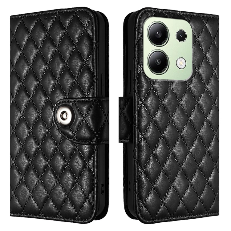Para Redmi Note 13 4G Funda de Cuero con Tapa para Teléfono con Textura Rómbica Global y Cordón (Negro)