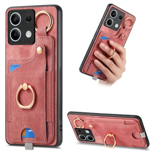 Para Redmi Note 13 5G Funda para Teléfono con Bolsa para Tarjeta con Anillo y Sensación de Piel Retro con Lazo para Colgar (Rosa)