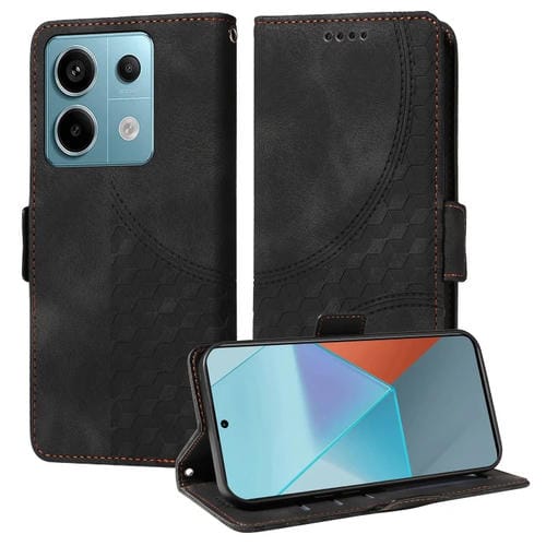 Para Redmi Note 13 Pro 5G Funda para Teléfono de Cuero Estrellado con Rombos En Relieve (Negro)