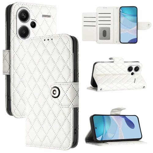 Para Redmi Note 13 Pro + Funda de Cuero con Tapa para Teléfono con Textura Rómbica Global y Cordón (Blanco)