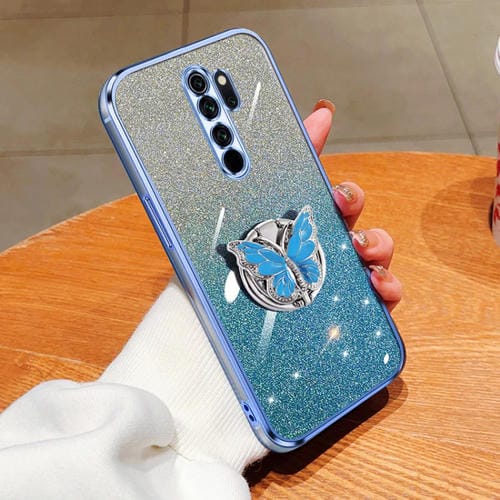 Para Redmi Note 8 Pro Funda para Teléfono de TPU con Soporte de Mariposa con Brillo Degradado Plateado (Azul Sierra)