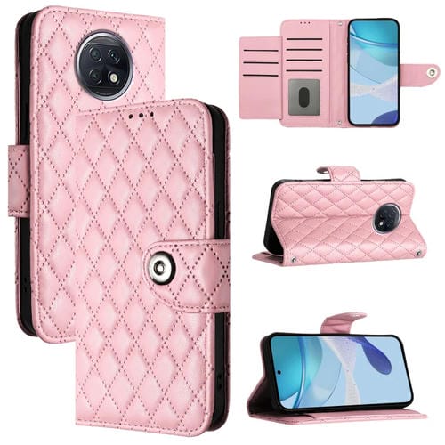 Para Redmi Note 9T Funda de Cuero con Tapa para Teléfono con Textura Rómbica Global y Cordón (Rosa)