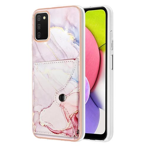 Estuche para teléfono Samsung Galaxy A03S Versión UE con ranura para tarjeta Imd patrón de mármol (Oro Rosa)