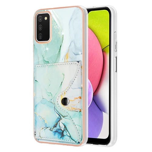Estuche para Teléfono Samsung Galaxy A03S Versión UE con Ranura para Tarjeta Imd Patrón Mármol (Verde)