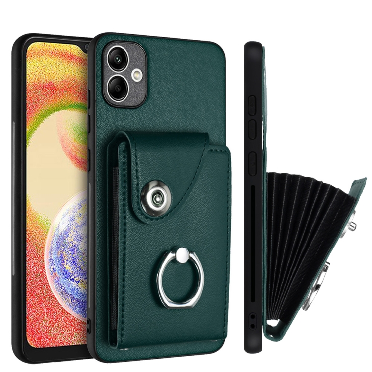 Funda para Teléfono Samsung Galaxy A04 4G de PU con Soporte para Anillo y Bolsa para Tarjeta (Verde)