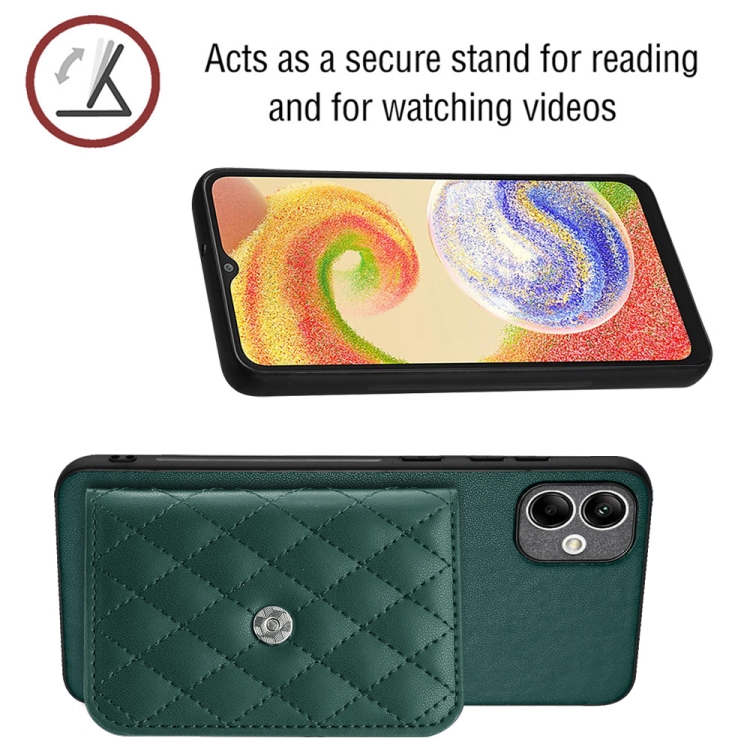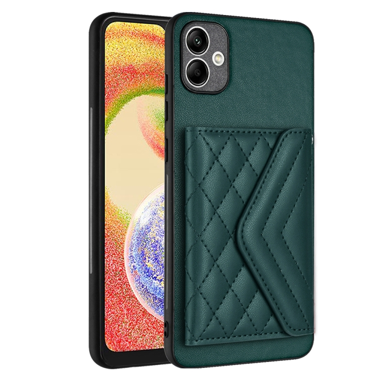 Funda para Teléfono Samsung Galaxy A04 4G Rfid con Bolsa para Tarjetas Textura Rómbica y Cordón Largo (Verde)