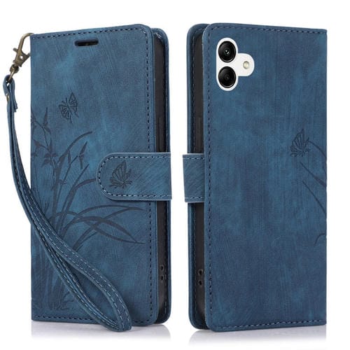 Funda para Teléfono Samsung Galaxy A04 / A04S Cuero Relieve Mariposa Orquídea (Azul)