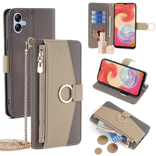 Funda para Teléfono Samsung Galaxy A04E 4G Cuero Textura Litchi Cruzada (Gris)