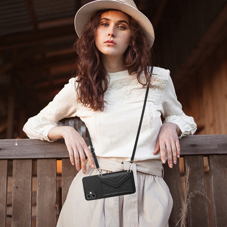 Funda para Teléfono Samsung Galaxy A04E 4G M04 4G Rfid con Bolsa para Tarjetas Textura Rómbica Cordón Largo (Negro)