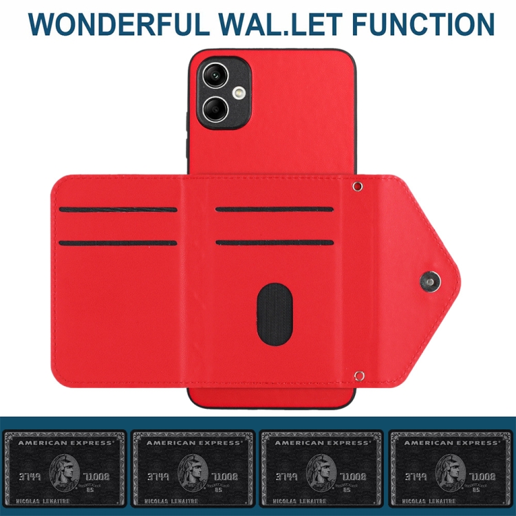 Funda para Teléfono Samsung Galaxy A04E 4G M04 4G con Bolsa para Tarjetas Rfid Textura Rómbica Cordón Largo (Rojo)