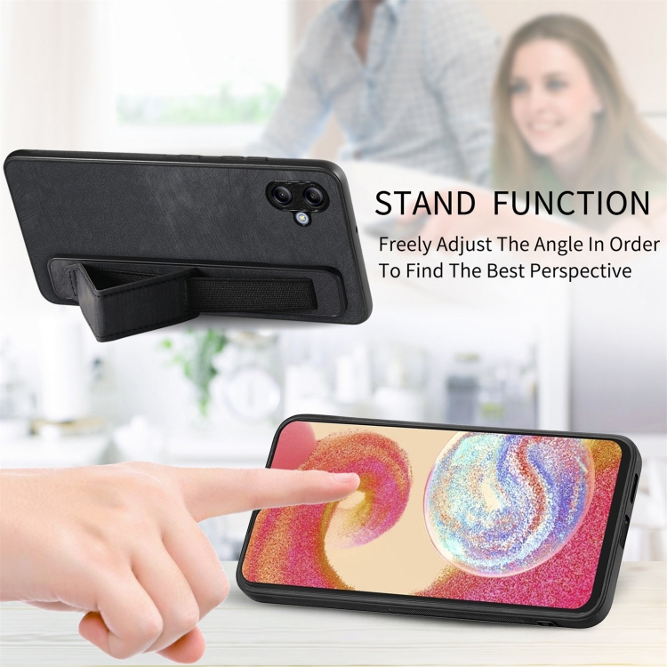 Funda para Samsung Galaxy A04E Retro con Soporte de Pulsera y Parte Trasera de Cuero (Negro)