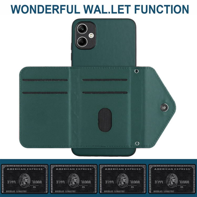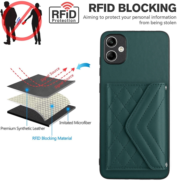 Funda para Teléfono Samsung Galaxy A05 4G Rfid con Bolsa para Tarjetas Textura Rómbica y Cordón Largo (Verde)