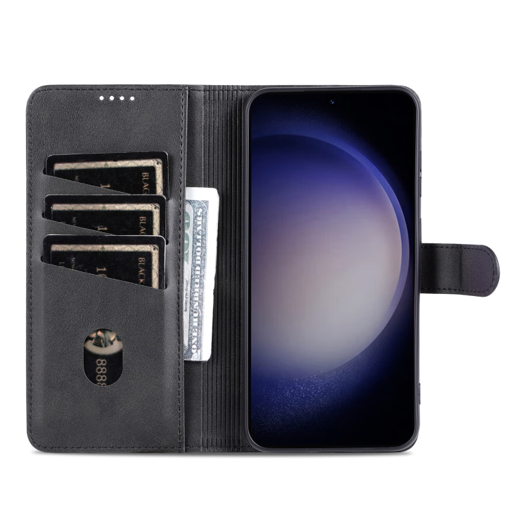 Funda para Samsung Galaxy A05 Azns Skin Feel Becerro Textura Cuero con Tapa (Negro)