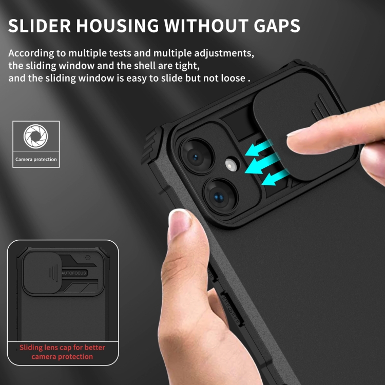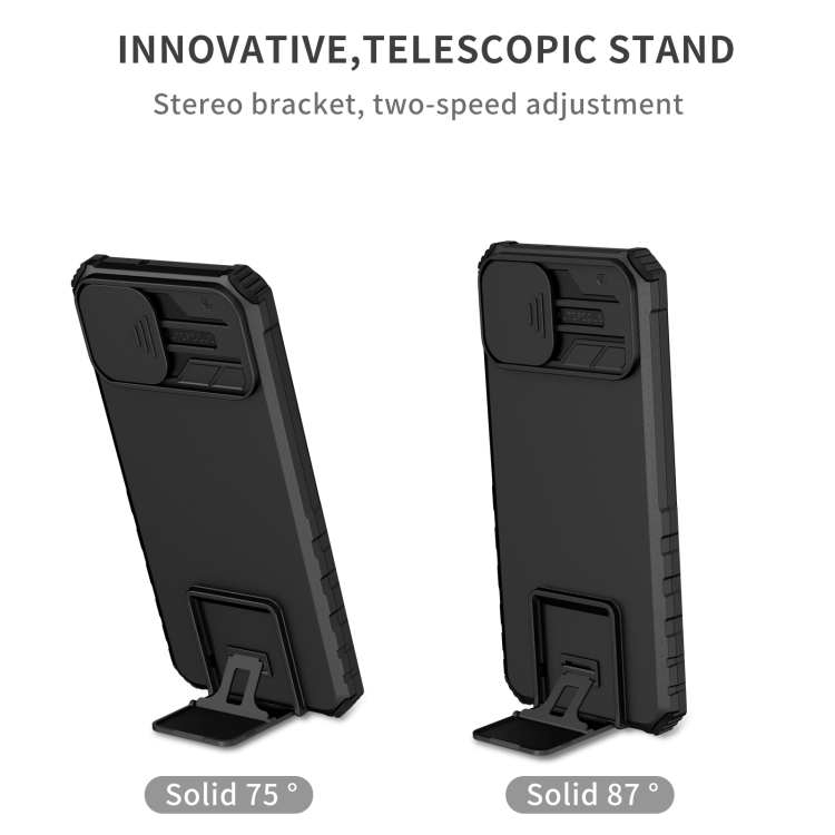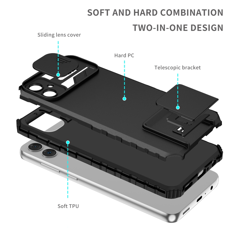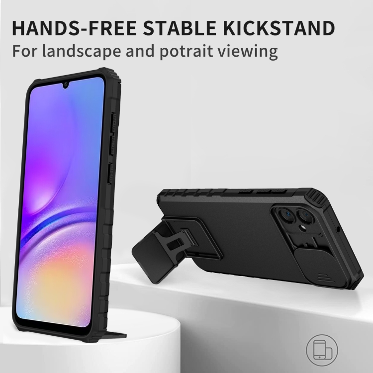 Funda para Teléfono Samsung Galaxy A05 con Soporte Estereoscópico y Pantalla de Leva Deslizante (Negro)