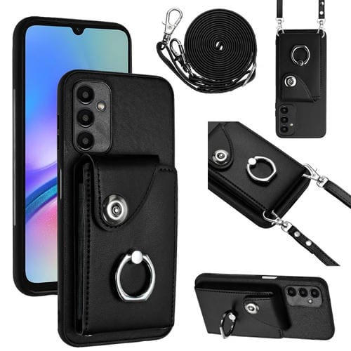 Funda para Teléfono Samsung Galaxy A05S 4G con Soporte Anillo y Bolsa para Tarjeta con Cordón Largo (Negro)