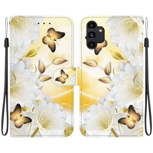 Funda de Cuero Samsung Galaxy A13 4G con Dibujo Coloreado Textura de Cristal (Epiphyllum de Mariposa Dorada)