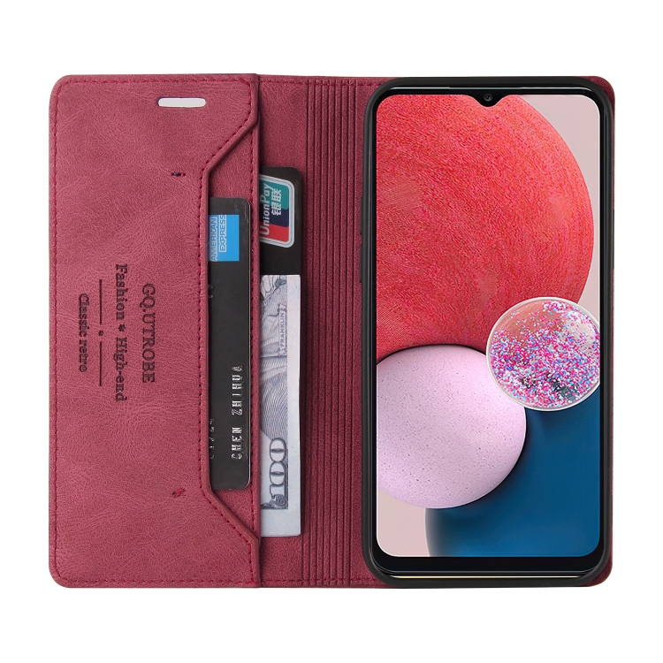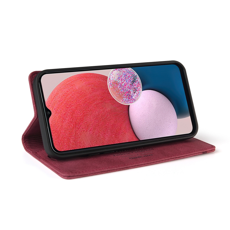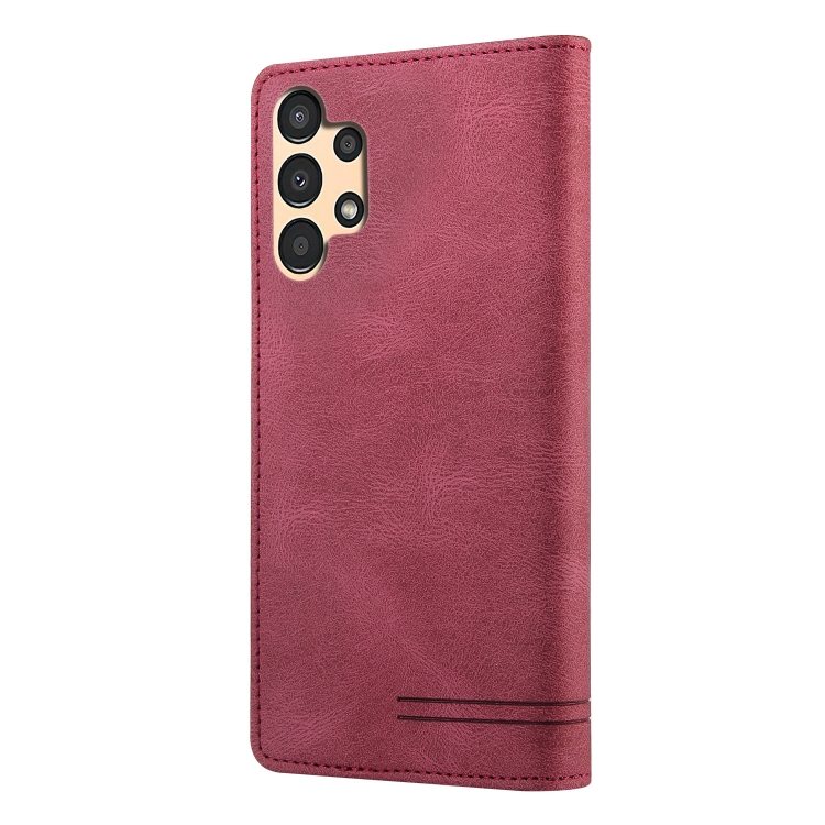 Funda de Cuero para Samsung Galaxy A13 4G Skin Feel con Tapa Horizontal Cepillo Antirrobo y Soporte (Rojo Vino)