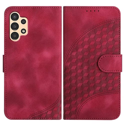 Funda para Samsung Galaxy A13 4G Yx0060 Cuero con Relieve y Cabeza de Elefante con Cordón (Rojo Rosa)