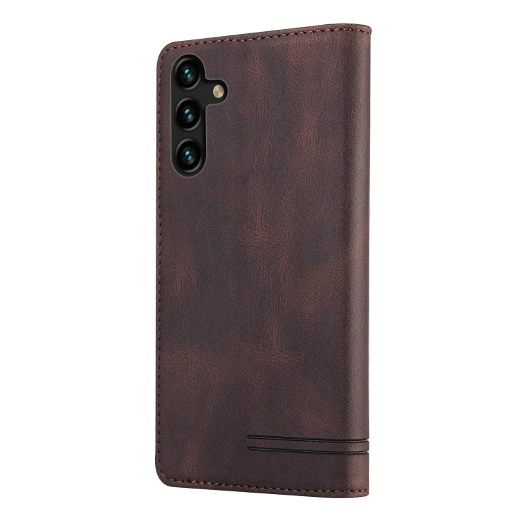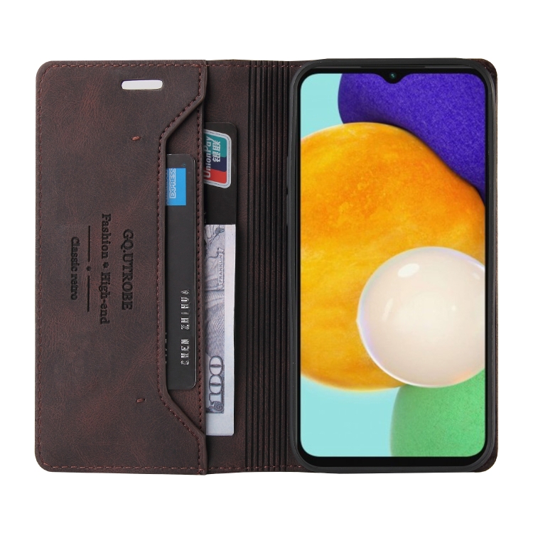 Funda de Cuero para Samsung Galaxy A13 5G Skin Feel con Tapa Horizontal Cepillo Antirrobo y Soporte (Marrón)