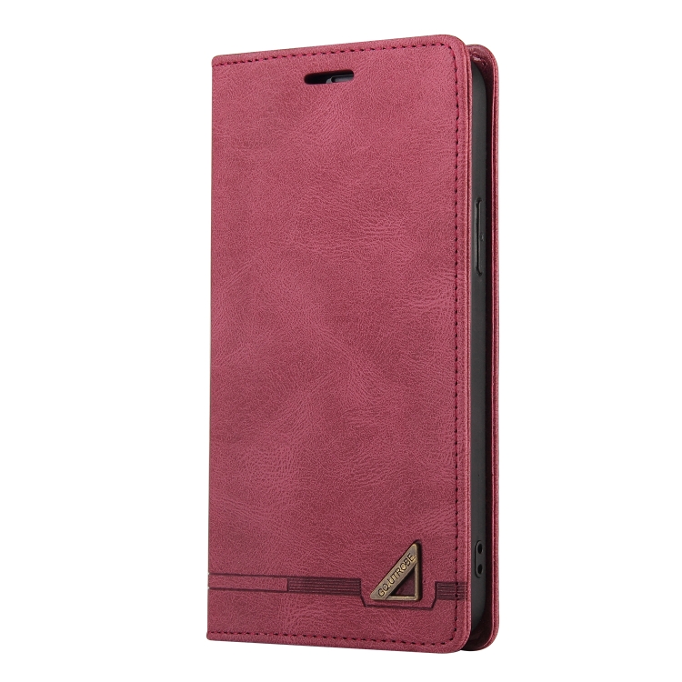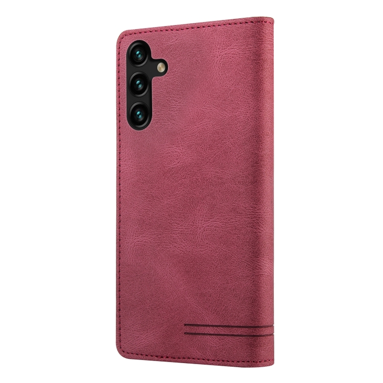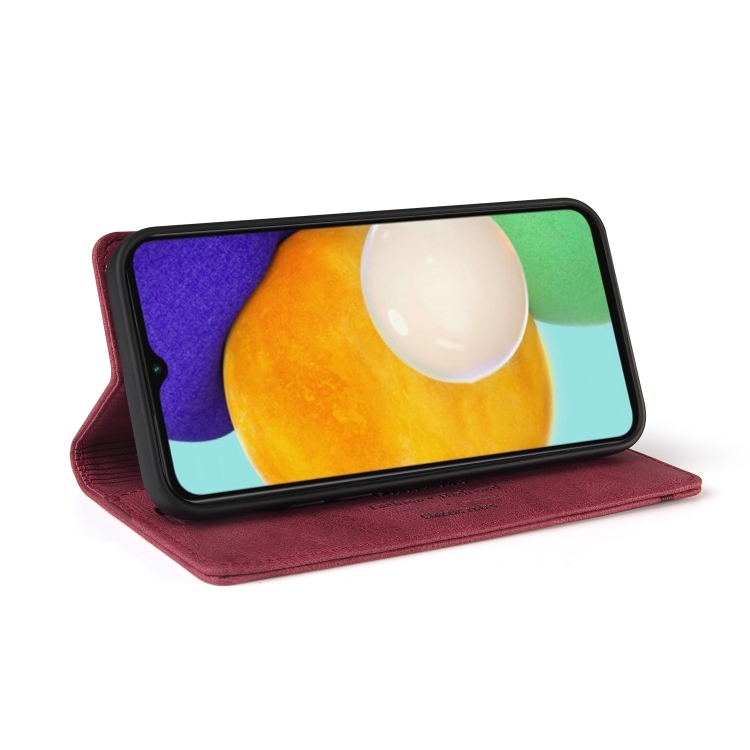 Funda de Cuero Samsung Galaxy A13 5G Skin Feel Tapa Horizontal Cepillo Antirrobo Soporte (Rojo Vino)