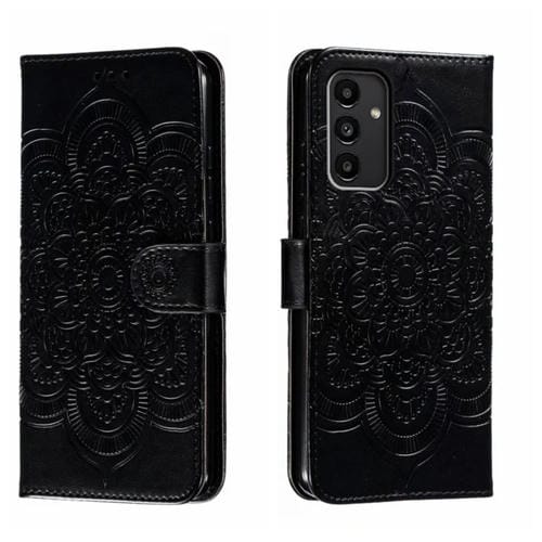 Funda de Cuero Samsung Galaxy A13 5G Sun Mandala con Patrón En Relieve (Negro)