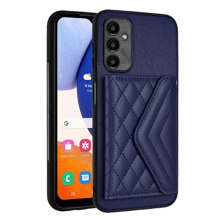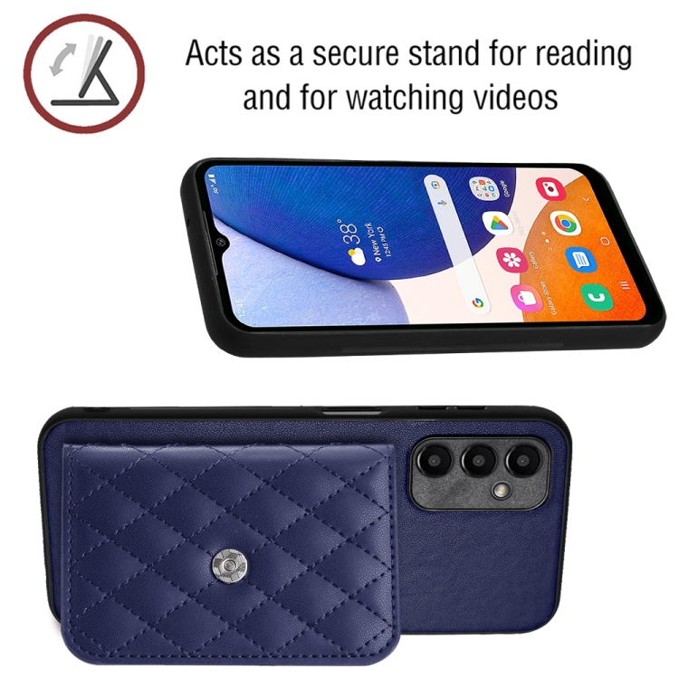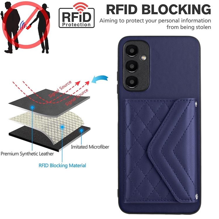 Funda para Teléfono Samsung Galaxy A14 5G Rfid con Bolsa para Tarjetas Textura Rómbica y Cordón Largo (Púrpura Oscuro)