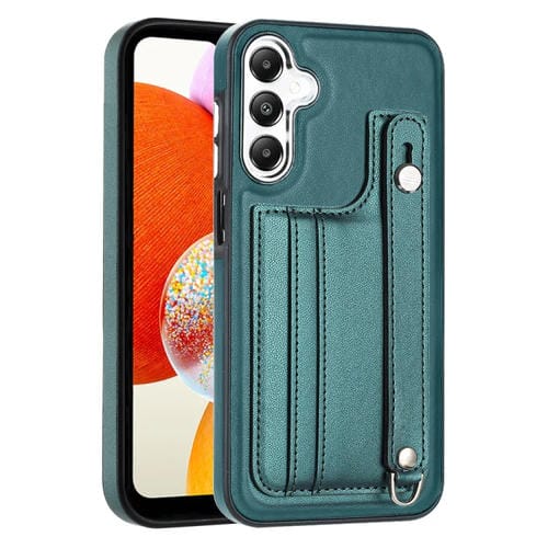 Funda para Teléfono Samsung Galaxy A15 Cuero a Prueba de Golpes con Correa para la Muñeca (Verde)