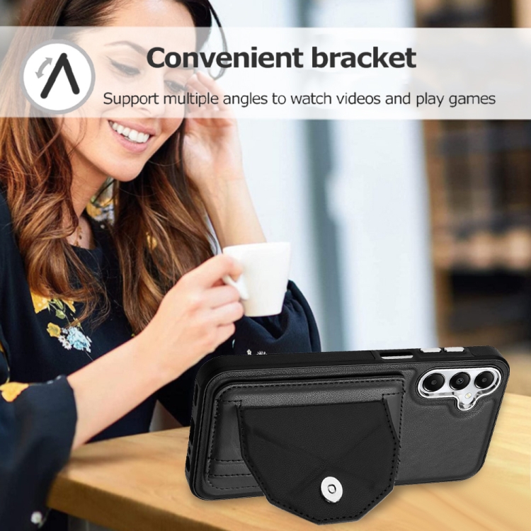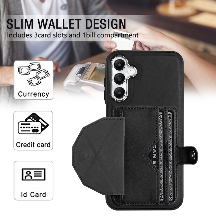 Funda para Teléfono Samsung Galaxy A15 Cuero a Prueba de Golpes con Tarjetero (Negro)