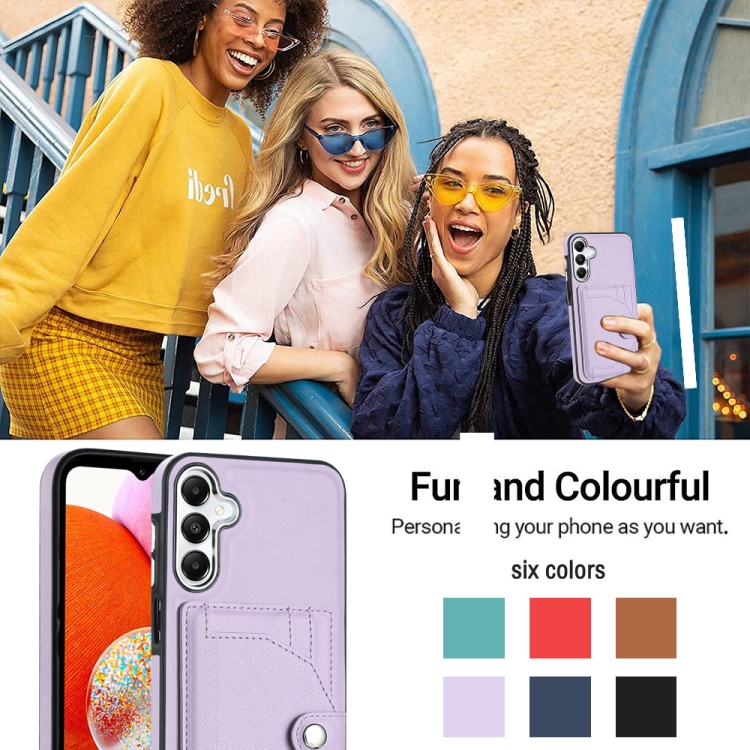 Funda para Teléfono Samsung Galaxy A15 Cuero a Prueba de Golpes con Tarjetero (Púrpura)