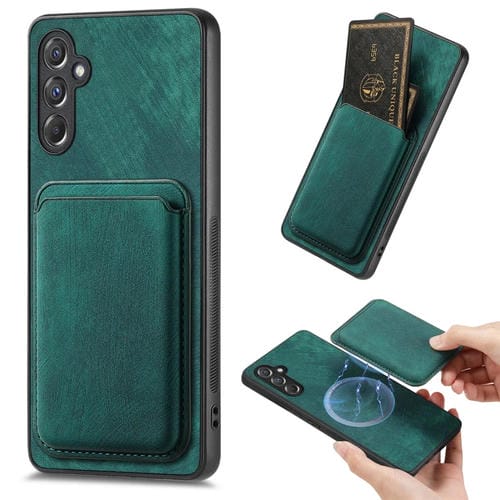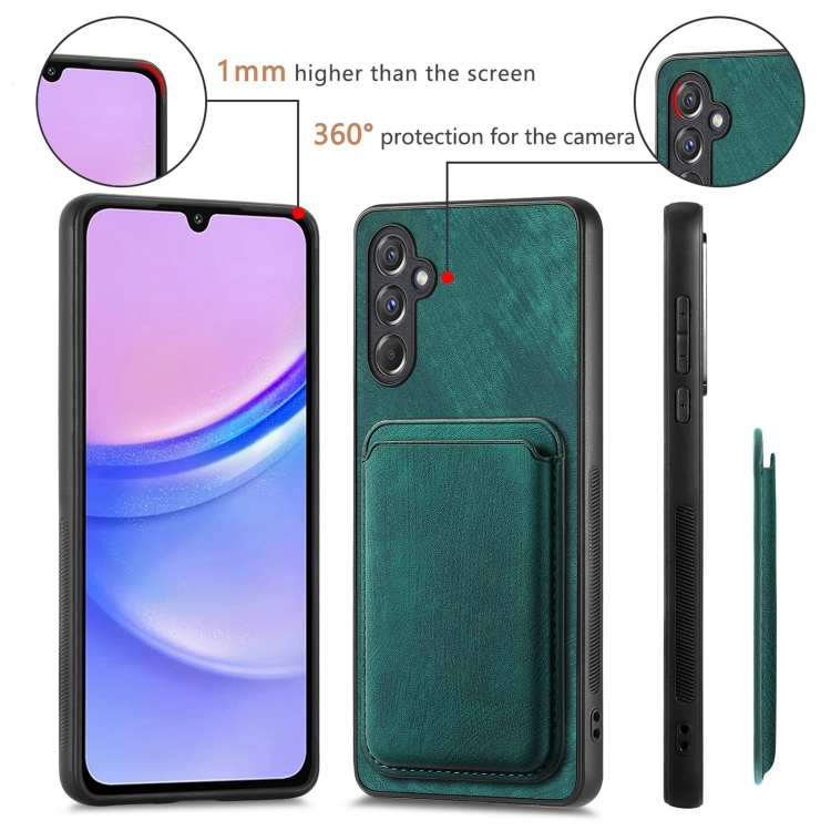 Funda de teléfono Samsung Galaxy A15 magnética con bolsa de tarjeta de cuero retro (Verde)