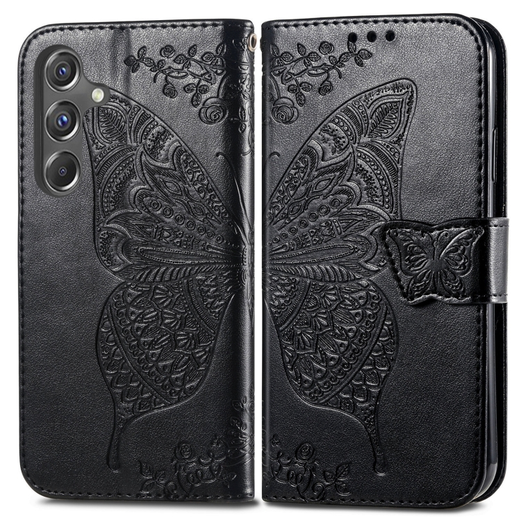 Funda para Teléfono Samsung Galaxy A15 Cuero Relieve Flor de Amor y Mariposa (Negro)