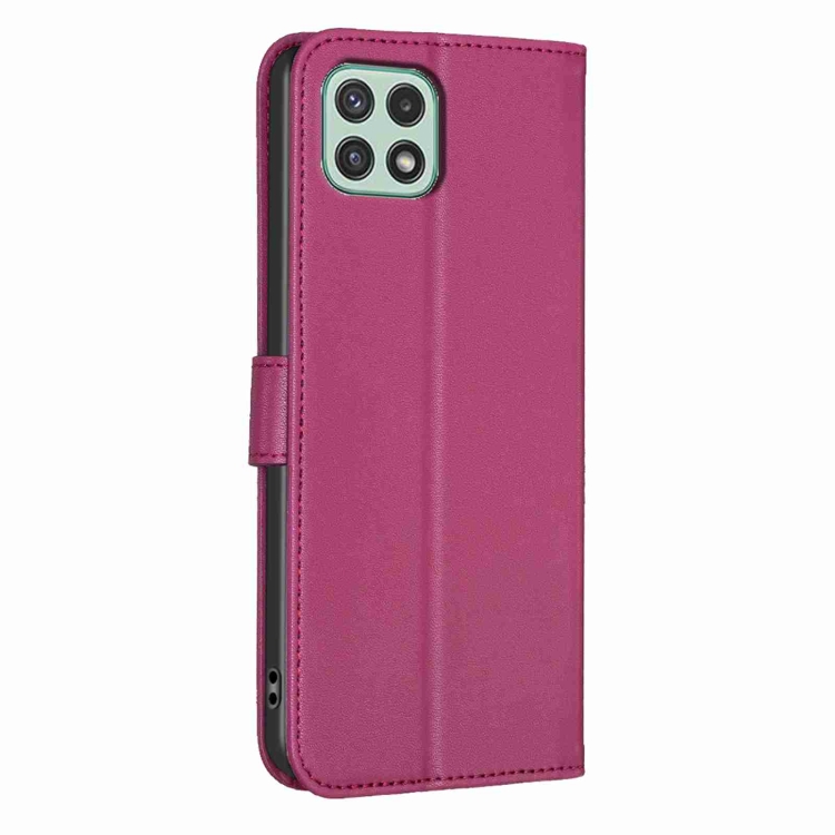 Funda para Samsung Galaxy A22 5G Cuero con Relieve de Cuatro Hojas (Rojo Rosa)