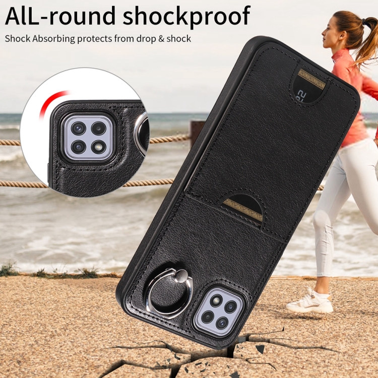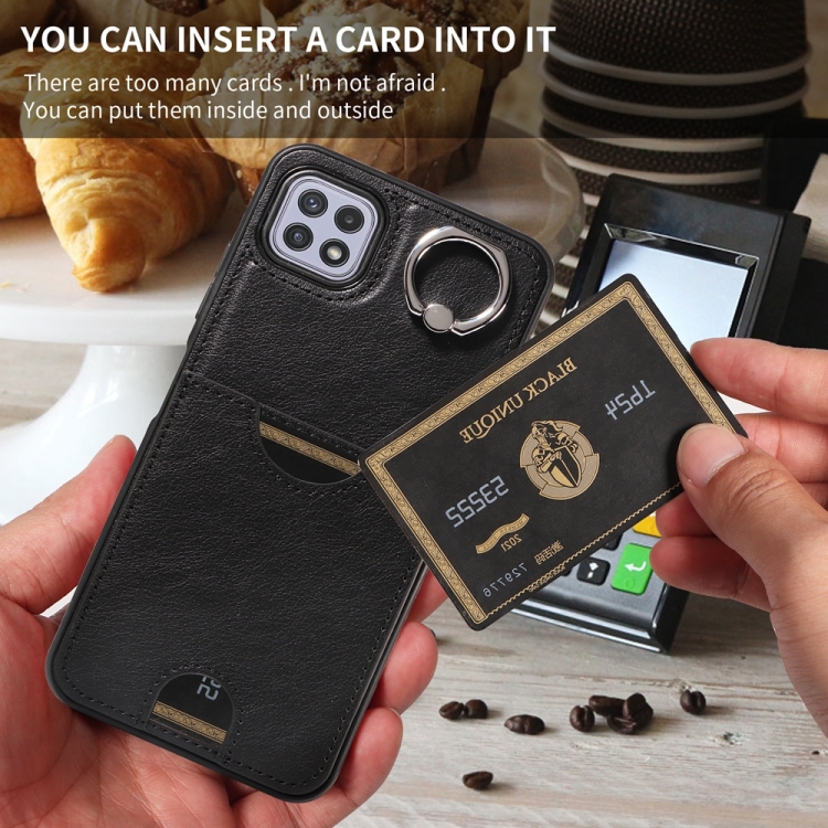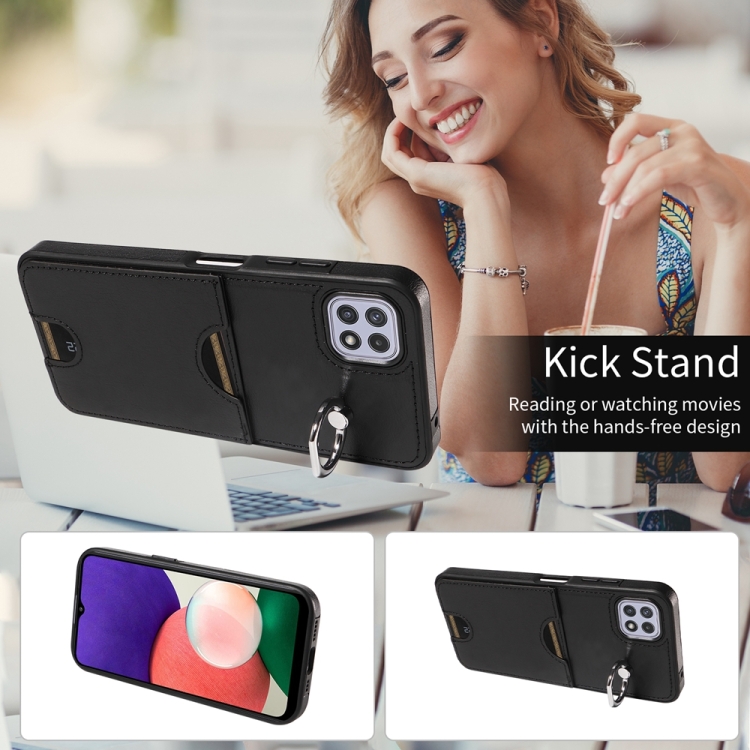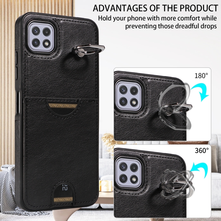 Funda para Teléfono Samsung Galaxy A22 5G con Soporte para Anillo y Ranura para Tarjeta (Negro)