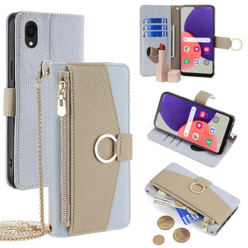 Funda para Teléfono Samsung Galaxy A22 5G Versión JP Cuero Textura Crossbody Litchi (Azul)