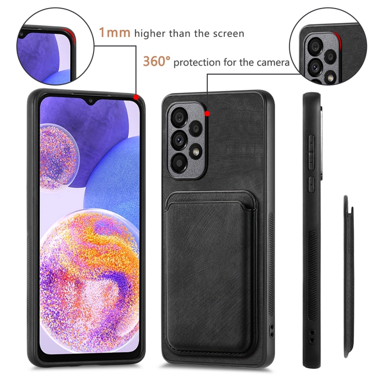 Funda de teléfono Samsung Galaxy A23 Magnética con Bolsa de Tarjeta Cuero Retro (Negro)
