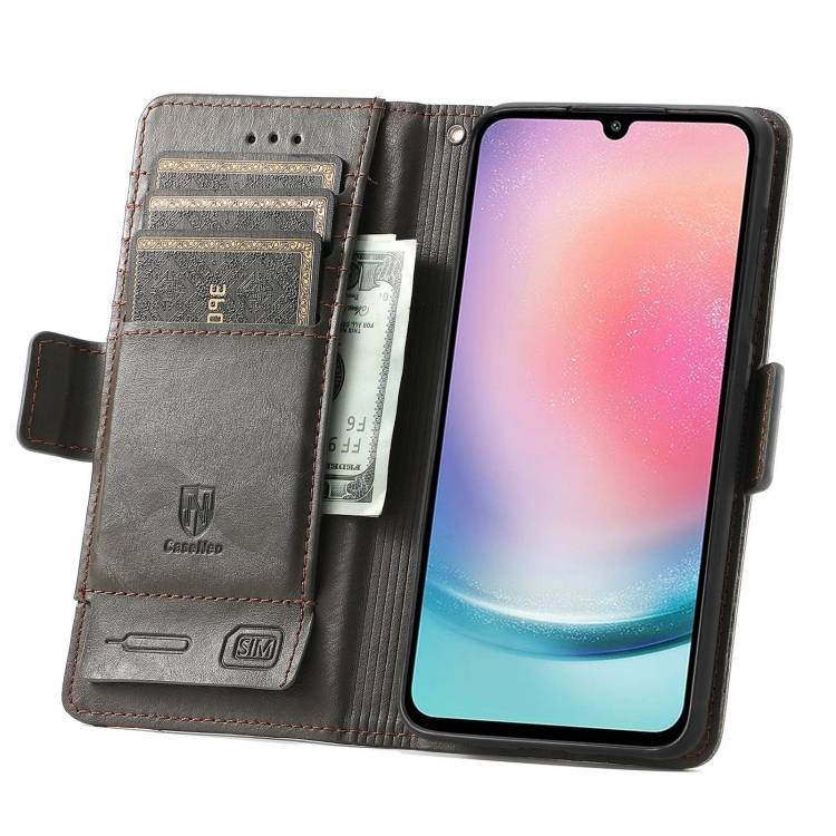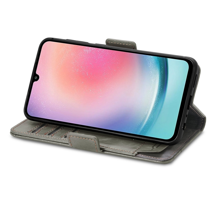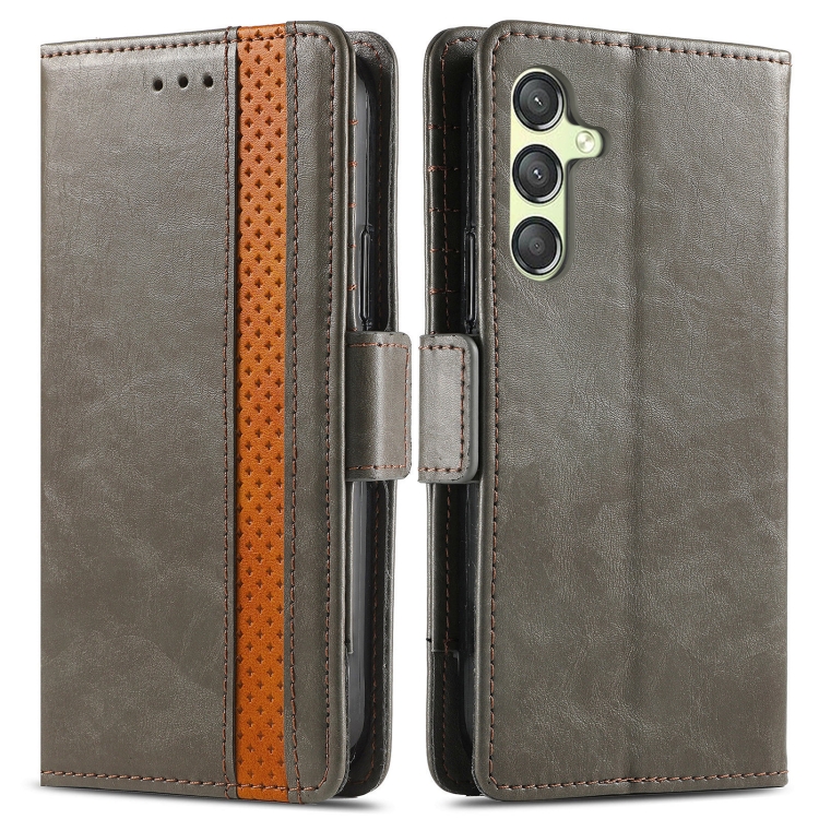 Funda de Cuero Caseneo Splicing para Samsung Galaxy A24 4G con Hebilla Magnética Dual (Gris)
