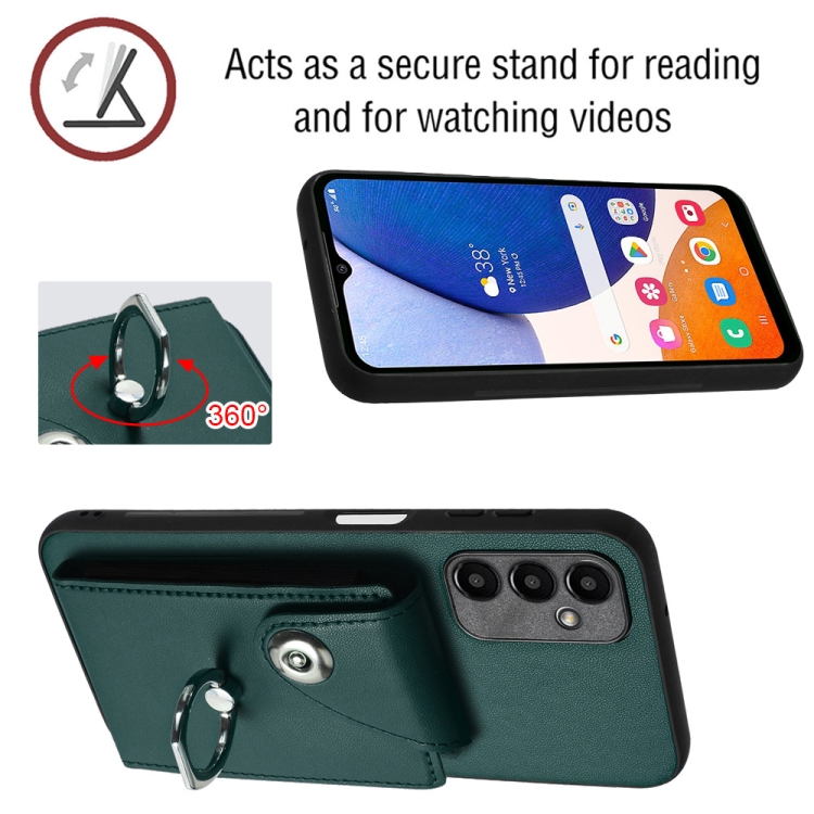 Funda para Teléfono Samsung Galaxy A24 4G PU con Soporte para Anillo y Bolsa para Tarjeta (Verde)