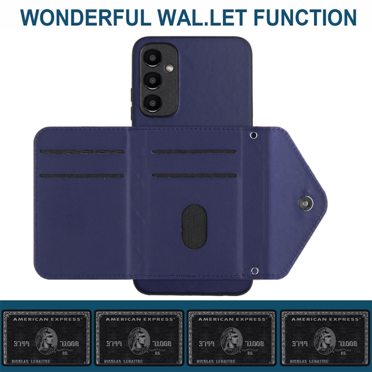 Funda para Teléfono Samsung Galaxy A24 4G Rfid con Bolsa para Tarjetas Textura Rómbica y Cordón Largo (Púrpura Oscuro)