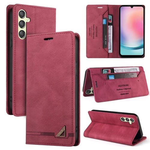Funda de Cuero para Samsung Galaxy A24 5G Skin Feel con Tapa Horizontal Cepillo Antirrobo y Soporte (Rojo Vino)