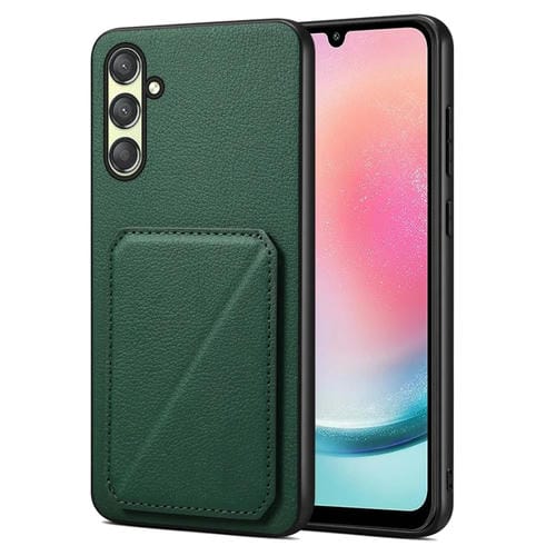 Funda para Teléfono Samsung Galaxy A24 Denior con Parte Trasera de Piel de Becerro de Imitación y Soporte (Verde)