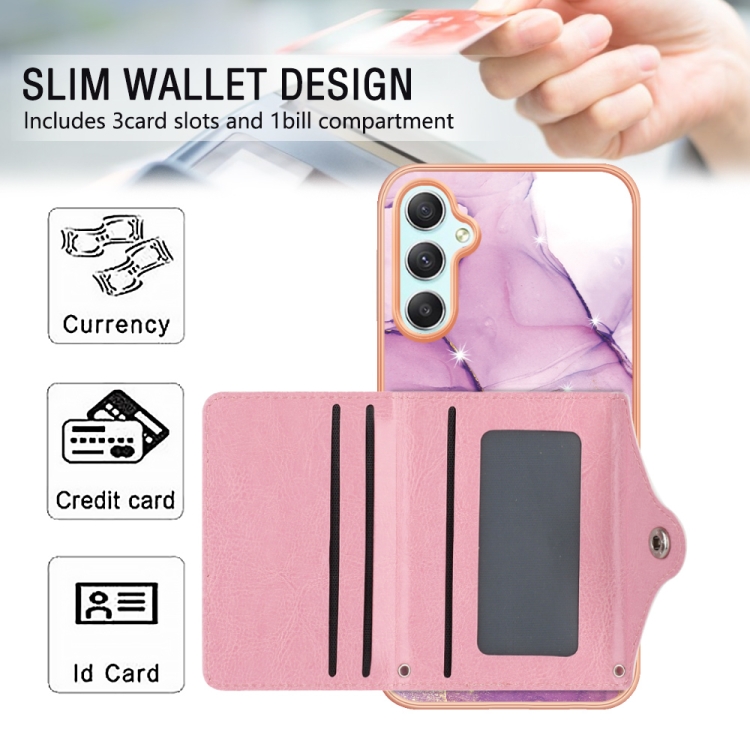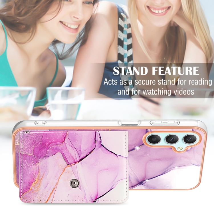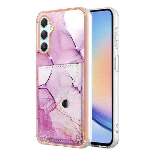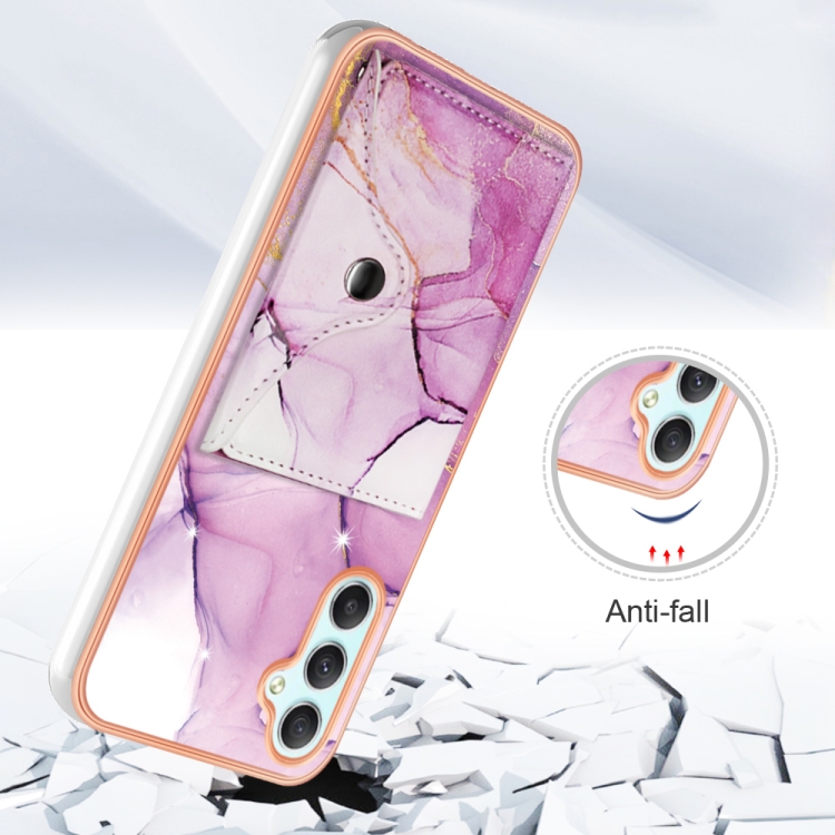 Estuche para Teléfono Samsung Galaxy A25 5G con Ranura para Tarjeta Imd Patrón Mármol (Oro Rosa Púrpura)