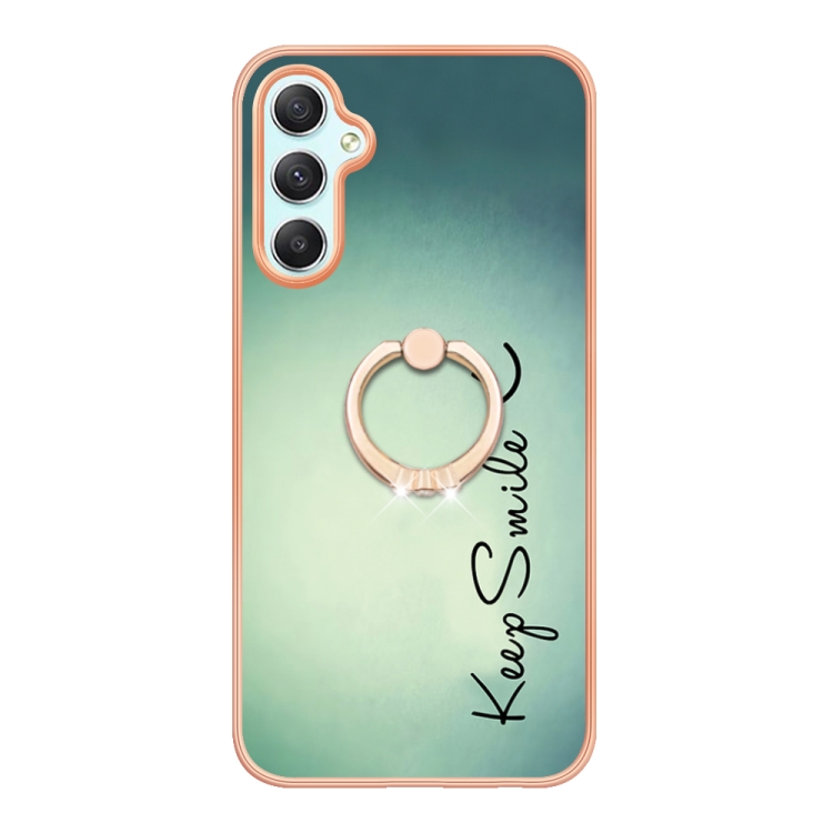 Estuche para Teléfono Samsung Galaxy A25 5G Imd Doble Cara Galvanoplastia Soporte para Anillo (Sonrisa)