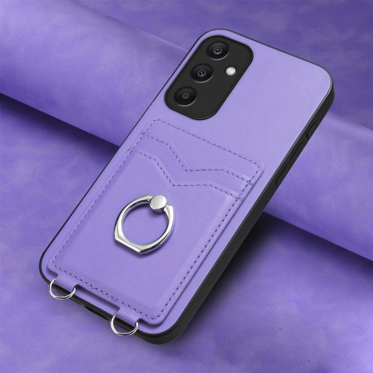 Estuche para Teléfono Samsung Galaxy A25 5G Global R20 con Soporte para Tarjeta y Anillo (Púrpura)